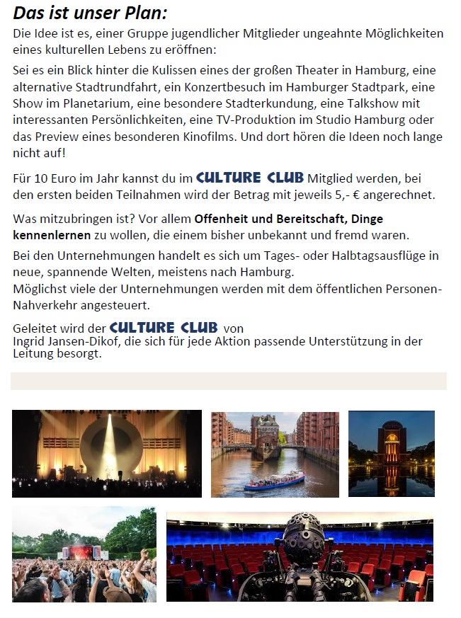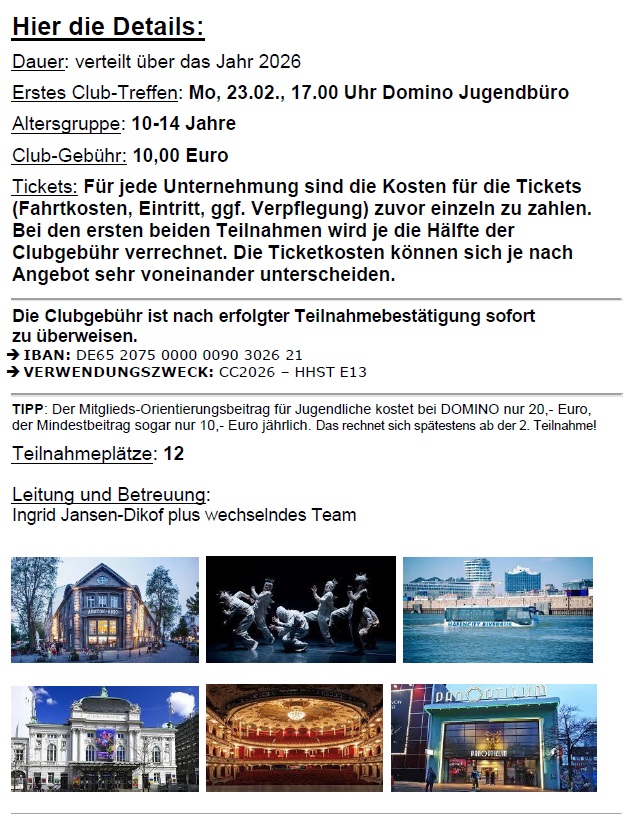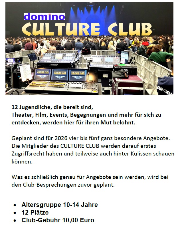 Culture Club: Erweiterte Altersgruppe bis 15 Jahre (Alters-Stichtag 23.02.2026)
