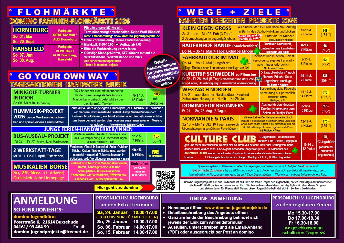 Die LINKS ZU DEN ANMELDEFORMULAREN befinden sich immer ganz am Ende der einzelnen Angebotsbeschreibungen und sind ab 24. Januar freigeschaltet.